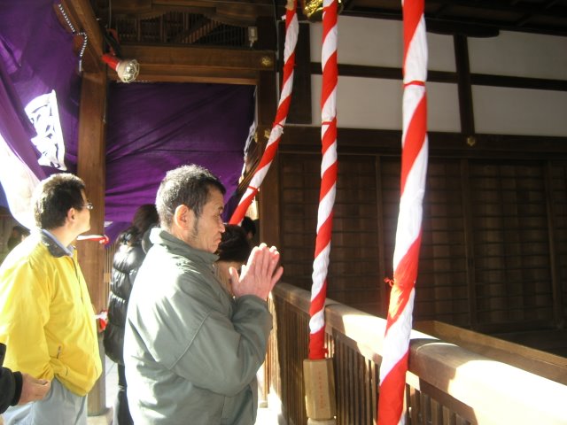 神社にお参りする前に手を洗い、そしてお賽銭をお供えして「この一年、健康でありますように」等、皆さん思い思いの願い事を託していました。