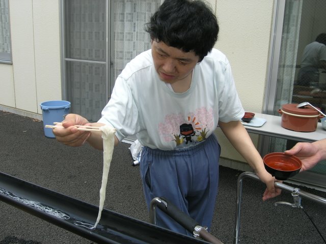 冷たい水とともに流れてくるそうめんを利用者さんは器用に箸でつかまれていました。