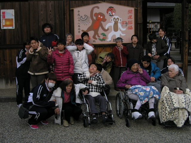 1月に入りお天気の良い、暖かな日を選び橋本市内にある神社へ午前と午後に分かれゆっくりと、男性利用者さん、女性利用者さんと初詣に行ってきました。