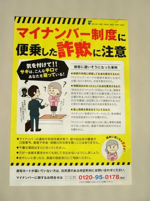 また早速にマイナンバー制度に便乗した詐欺も発生しています。