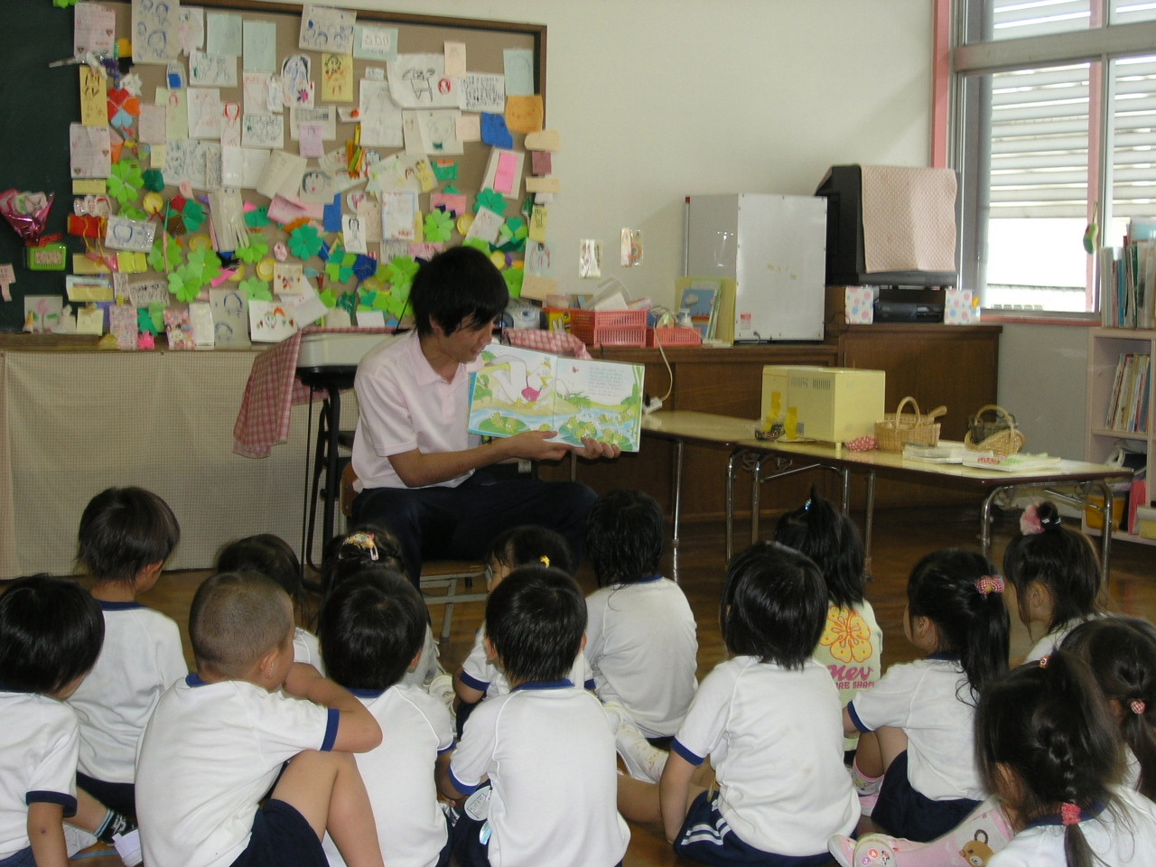 外遊びの後は、絵本読みを体験させてくれました。学校で学んだことを実践できる良い機会でした。表情豊かに感情込めて、大きな声で絵本を読んで、園児たちをお話の世界に引き込んでいました。