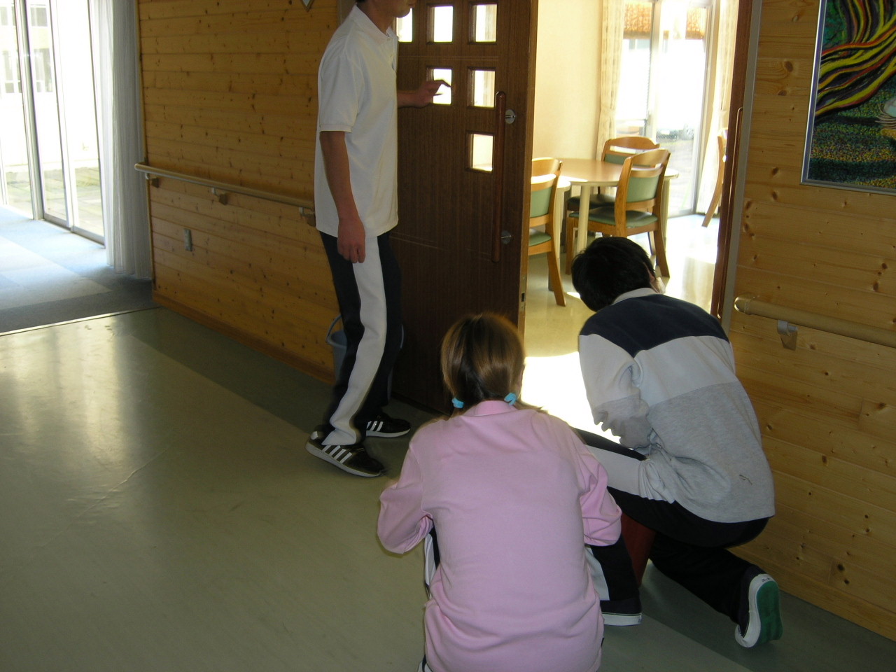 防災委員会から「多くの利用者さんの命を守る施設として、確認、報告だけではダメだ。抜き打ちの訓練を実施してお互いに確認しよう」との意見で早速に訓練を実施しました。