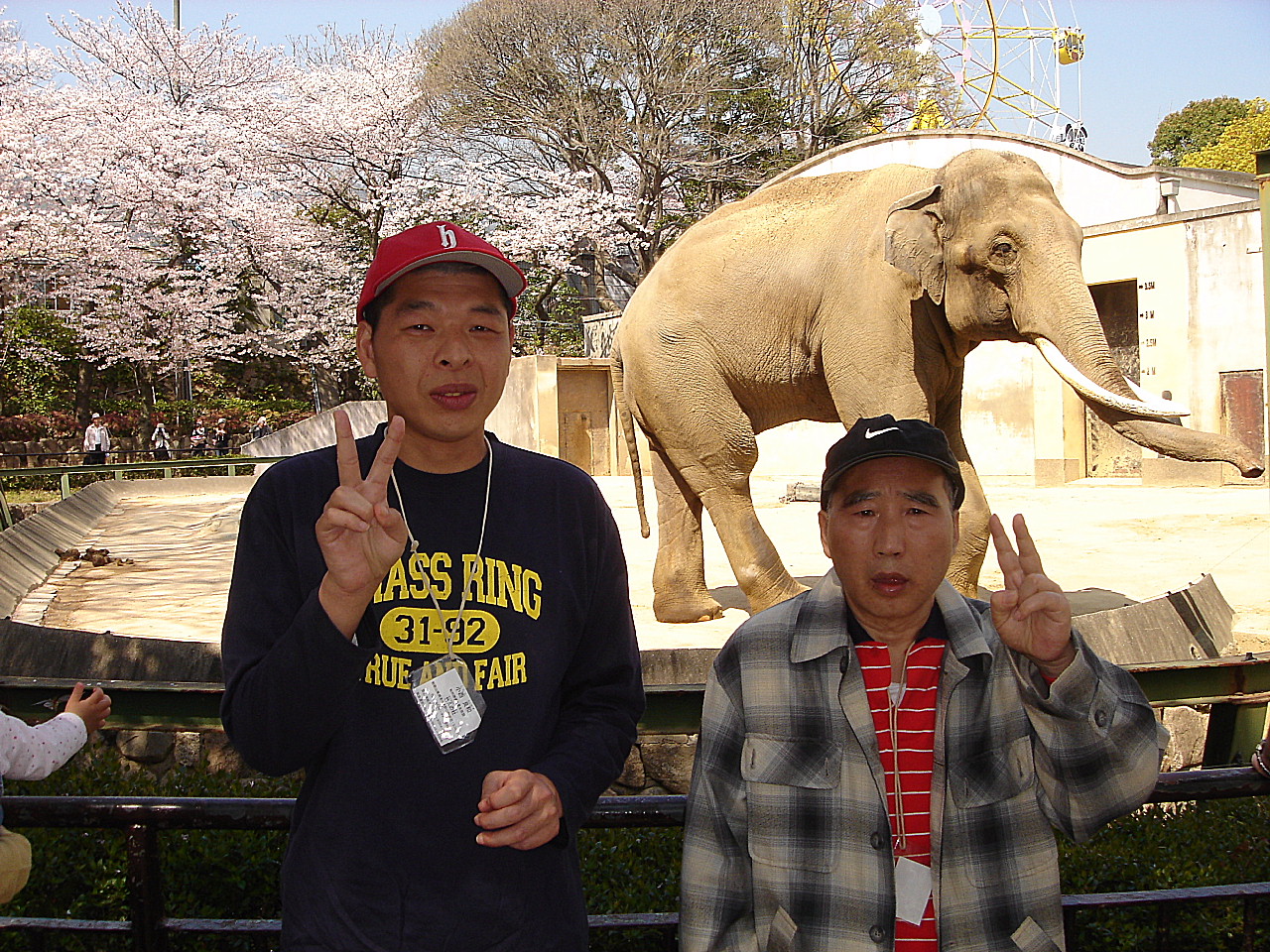写真左から1.神戸市立王子動物園に行ってきました 2.満開の桜と像の前にて 3.UFO?に乗って出発