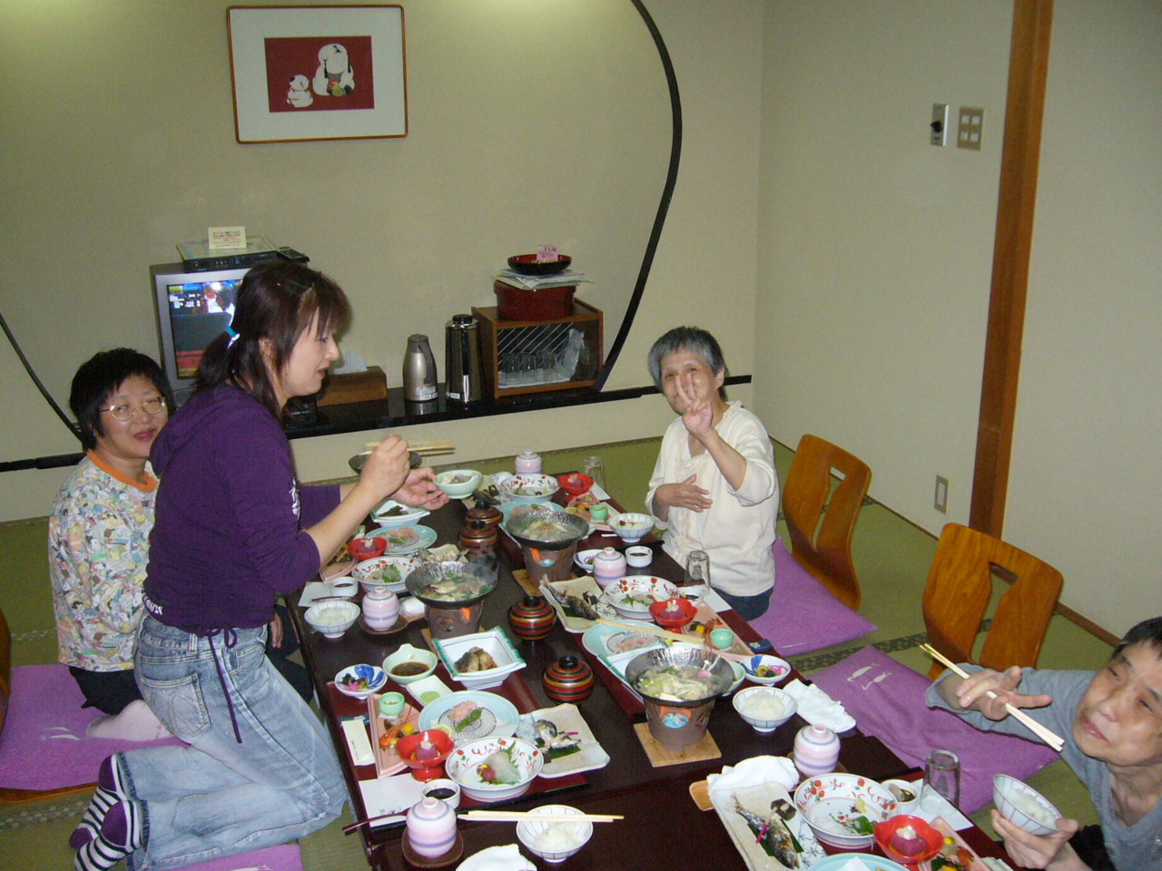 ホテルに到着後、ゆっくりと温泉につかり一日の旅の疲れを取った後はテーブルいっぱいに並べられたごちそうを目で楽しみ、舌で味わいゆっくりと夕餉のひとときを楽しみました。