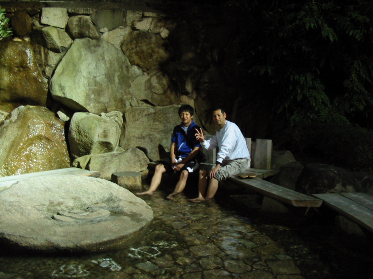 売店のそばには足湯コーナーがあり、ほのかな灯りに照らされた足湯場は幻想的でもありました。
