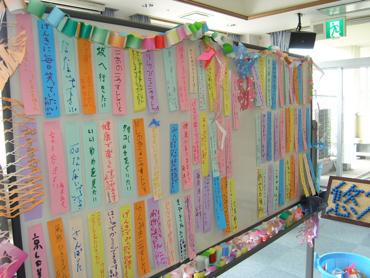 書き上がった短冊はホワイトボードに貼っていき、みんなで見ました。