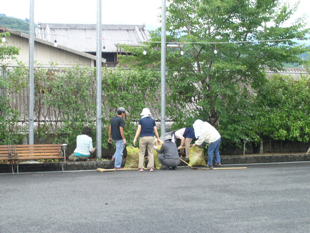 保護者会の皆様も9時半過ぎから続々と駆けつけていただき、庭を掃いたり、草を引いたり、お客さんを迎える準備に取りかかってくれました。
