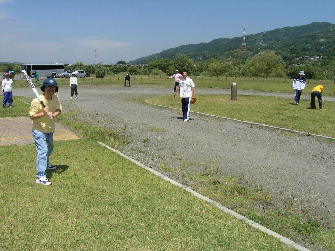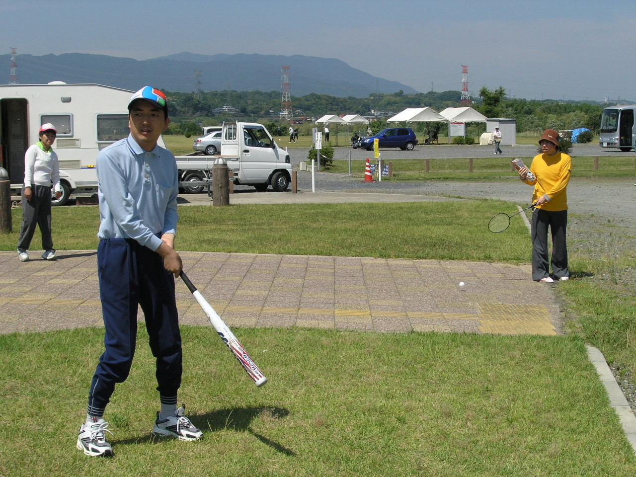 元気な人は野球をしたり、バトミントンをしたりと汗を流していました。