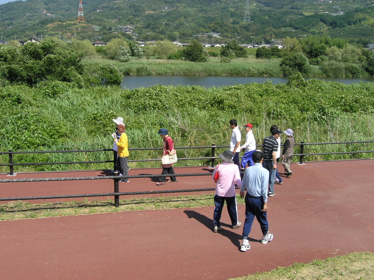 また、その先からは平坦な堤防の道が橋本中学まで続き、この道は早朝から地元の皆さんの散歩コースになっています。